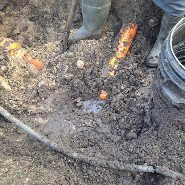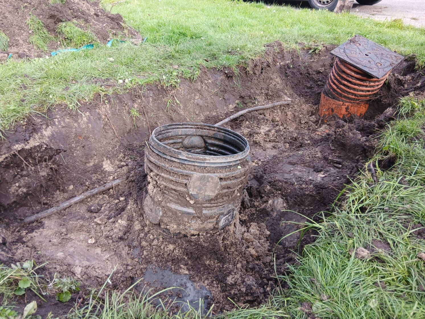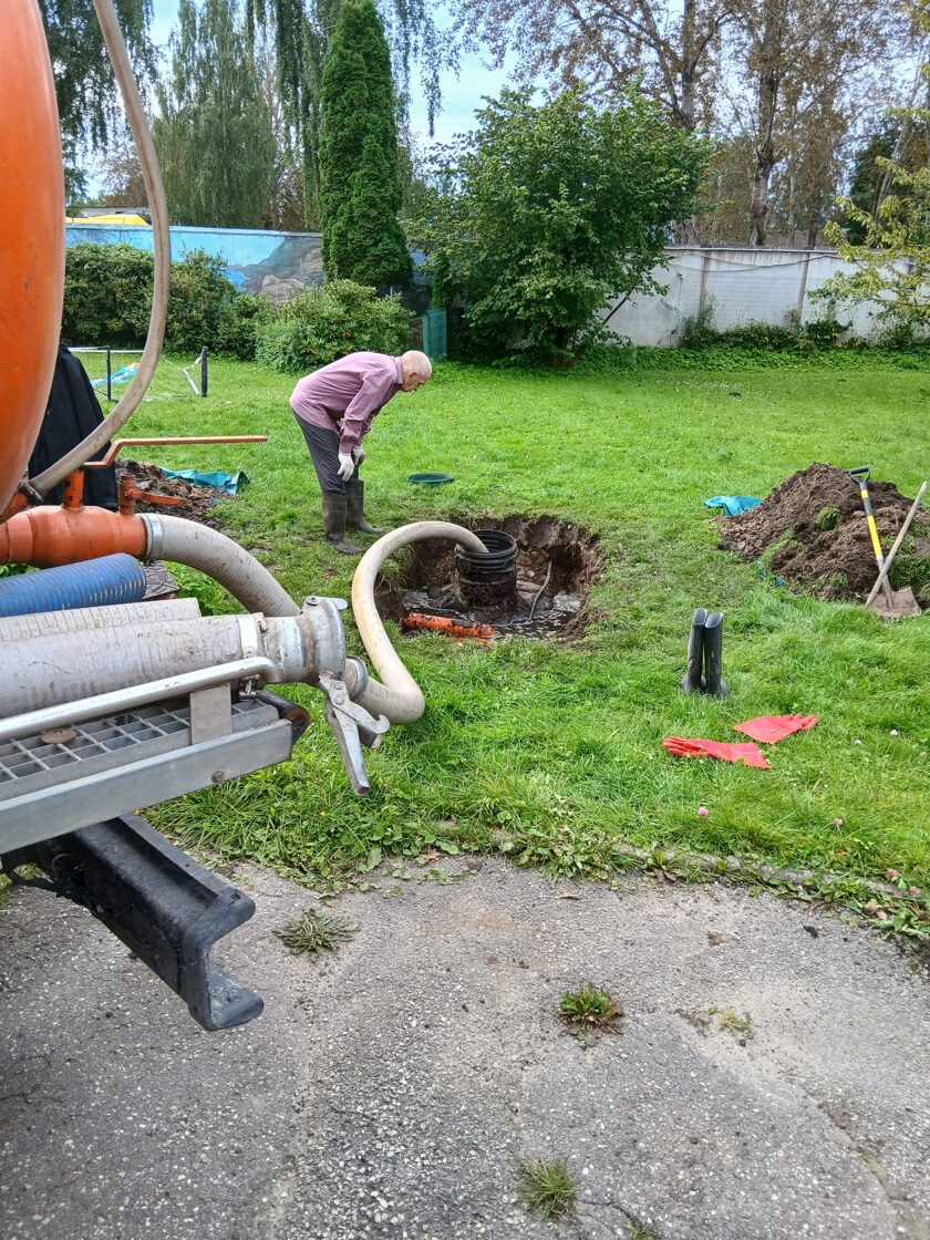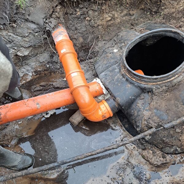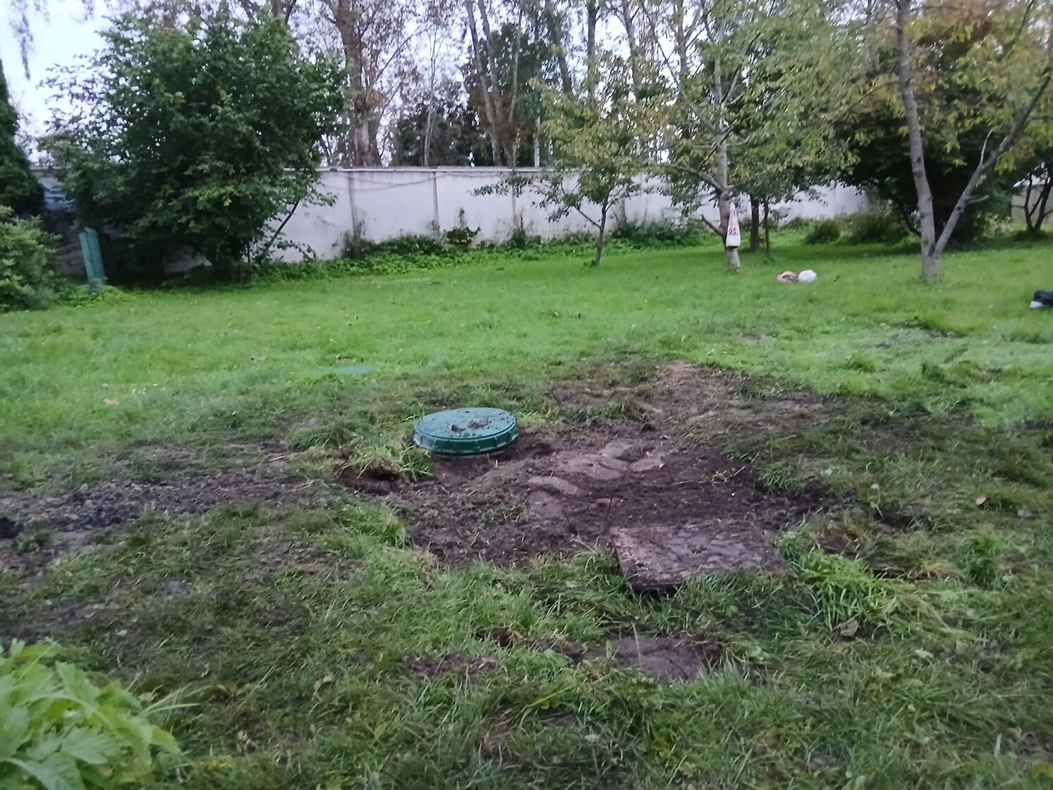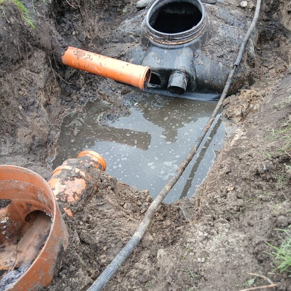 Мы вскрыли трубопроводы, вырезали повреждённые участки и заменили их, обеспечив правильный уклон. Теперь система работает как положено, и вода свободно поступает в биологический резервуар.